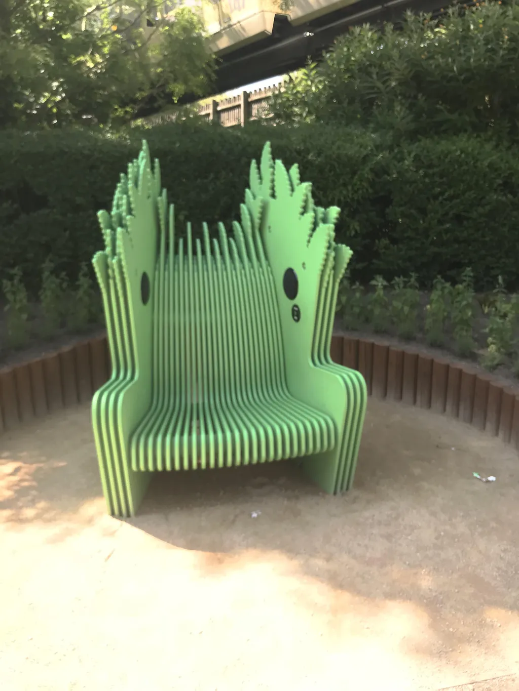 Designed by artist Jane Revitt, each chair is unique and custom-made for Chester Zoo, home of TV’s “The Secret Life of the Zoo”, by 3D designers and furniture makers Wood & Wire. They are fitted with a sound system that activates when a button is pressed, talking about the animals they overlook.