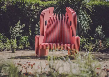 Each chair sits in its own garden at Chester Zoo, designed by Jane in collaboration with the Zoo’s horticultural team. The bright pink Flamingo Chair sits in the centre of the flamingo Garden, overlooking the flamingos in their lake. The Catmint Chair, sprouting green leaves, is surrounded by the Enrichment Garden, planted with a variety of herbs, vegetables and flowers. The chair tells visitors why catmint and other plants are grown for the Zoo’s lions and other animals.